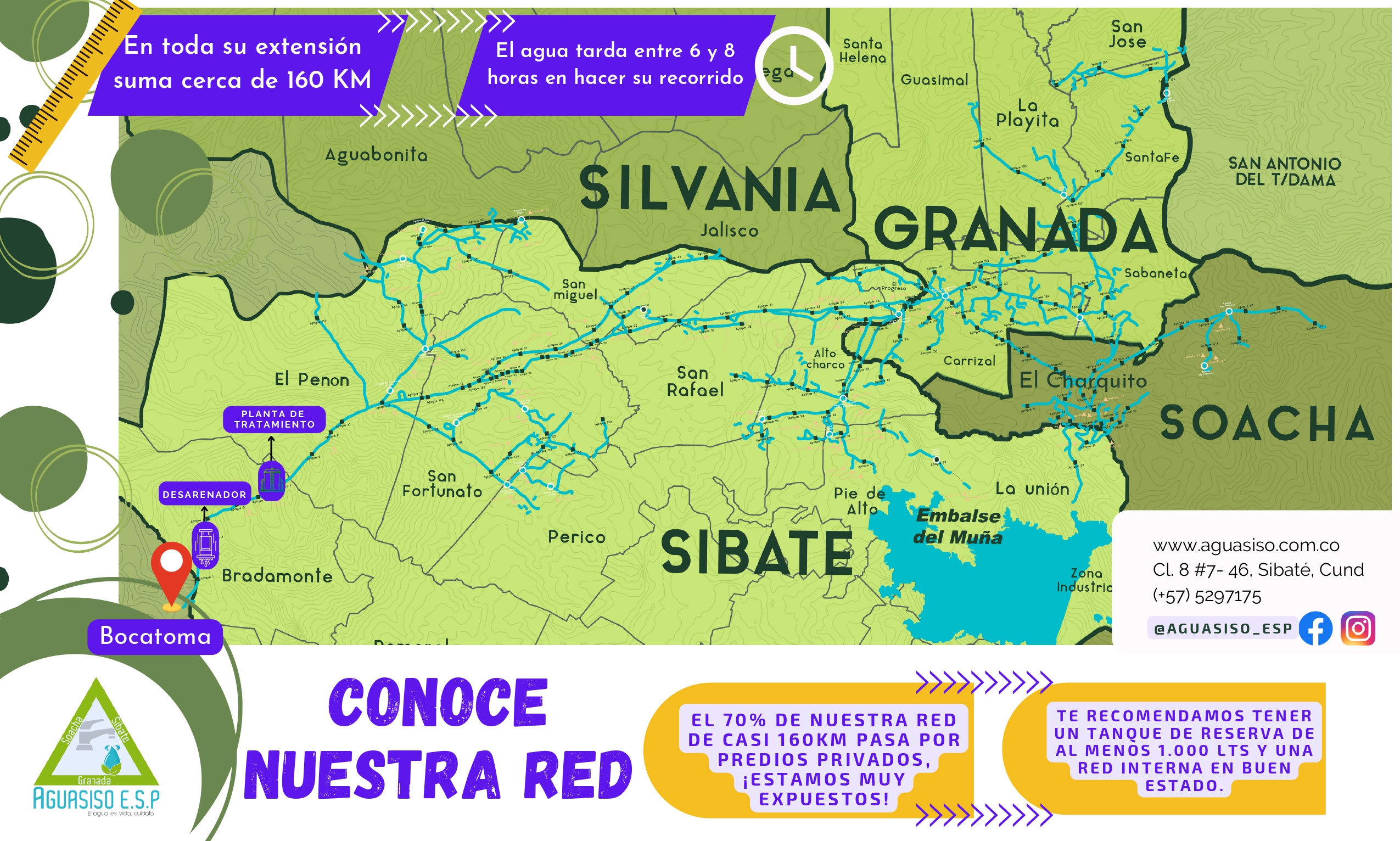Somos una asociación de afiliados acueducto, líder en el sector Rural que posibilita el desarrollo y bienestar de nuestros usuarios a través de un servicio oportuno, continuo y con calidad, para satisfacer la necesidad de agua potable como elemento de vida y desarrollo humano fundamental, de nuestros usuarios en las veredas y sectores de los Municipios de Sibaté, Soacha y Granada Cundinamarca.